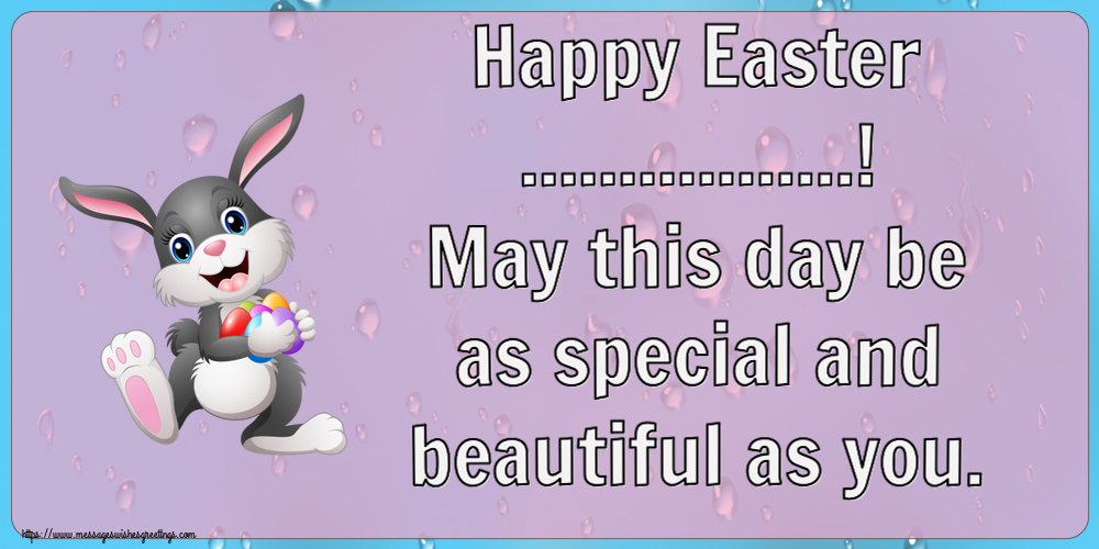 Happy Easter ...! May this day be as special and beautiful as you.