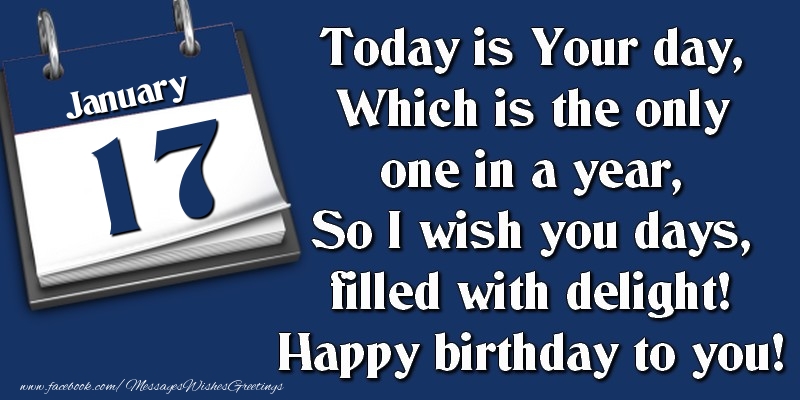 Today is Your day, Which is the only one in a year, So I wish you days, filled with delight! Happy birthday to you! 17 January